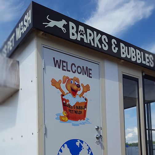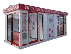 Setup: One Single Modular Station self-serve pet wash, plus agility equipment and even a mini laundromat.